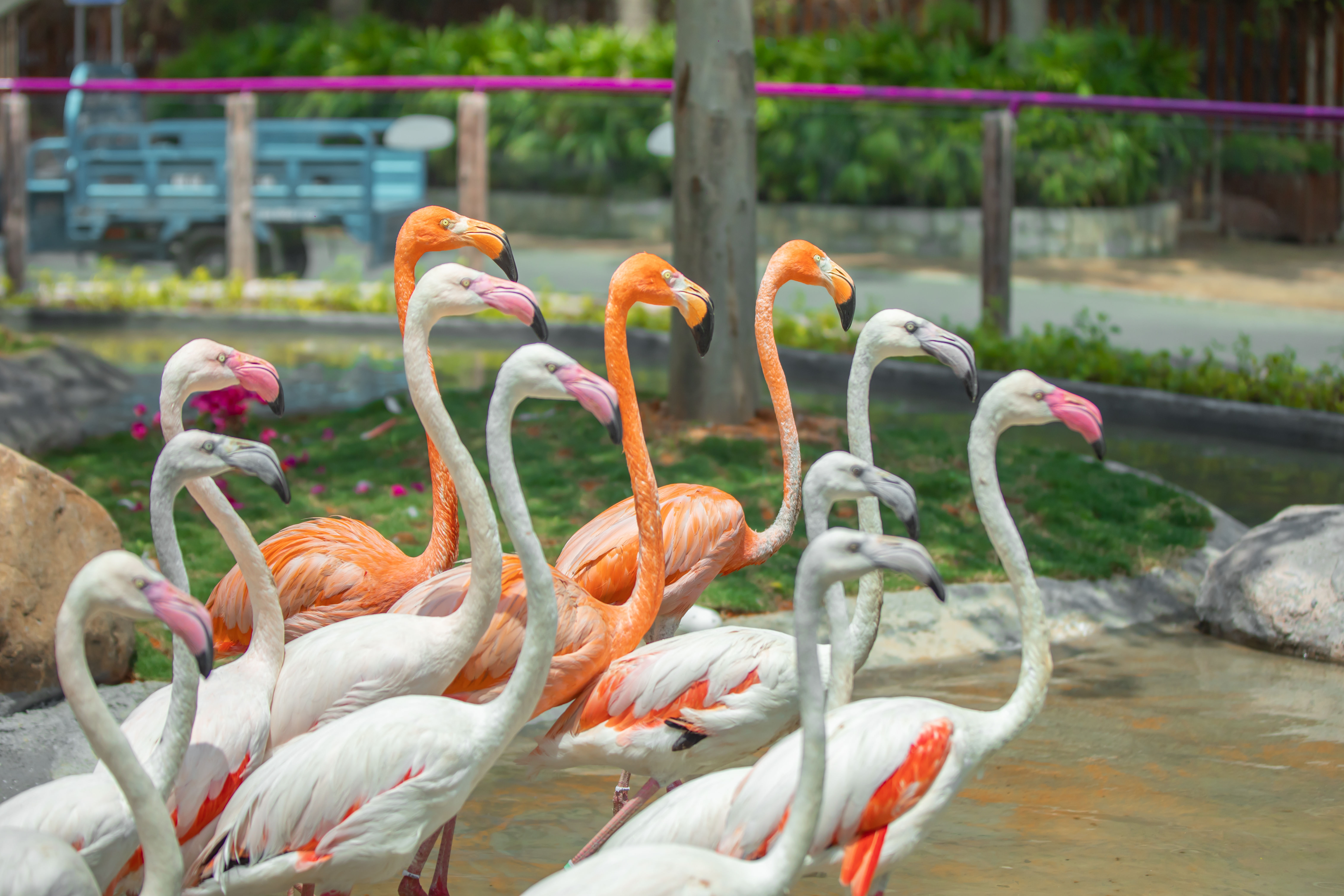 高贵婀娜的身姿、修长迷人的腿、粉橙交错的羽毛、明亮有神的大眼睛,火烈鸟是鸟届的颜值担当,仿佛和园区盛开的三角梅相得益彰,厦门刮起了一阵浓浓的ins风。4月28日开园始,25只‘网红’火烈鸟就正式亮相灵玲,据火烈鸟饲养员介绍,进驻园区的火烈鸟家族是由两个独立的‘家庭’组成的,分别是4只美洲红鹳及21只大红鹳。其中美洲红鹳家庭成员身披‘粉色外衣’,羽毛光泽明艳,远远看去,就像一团熊熊燃烧的烈火。大红鹳则穿上了白色外套,仅在翅羽上抹上一点玫瑰浅粉,漫步时诸色相衬,非常艳丽。火烈鸟具有很高的观赏价值,此次引进火烈鸟,不仅为动物园增添了一抹红色的靓丽风景,更让游客们近距离接触和了解这种新奇的鸟类。据了解,25只乔迁新居的火烈鸟目前身体状况健康,野外火烈鸟以小型鱼虾藻类等为食,动物园专门建立了一套完善的饲养和管理体系,确保它们的健康和生活质量。
