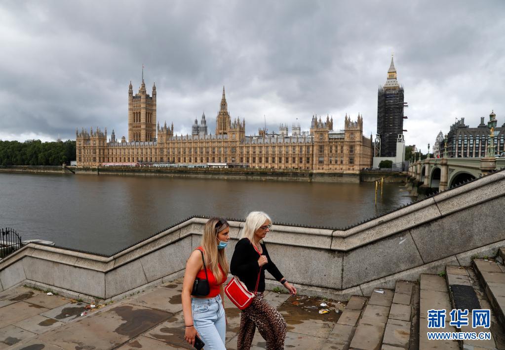 8月9日,人们从英国伦敦的议会大厦附近走过。