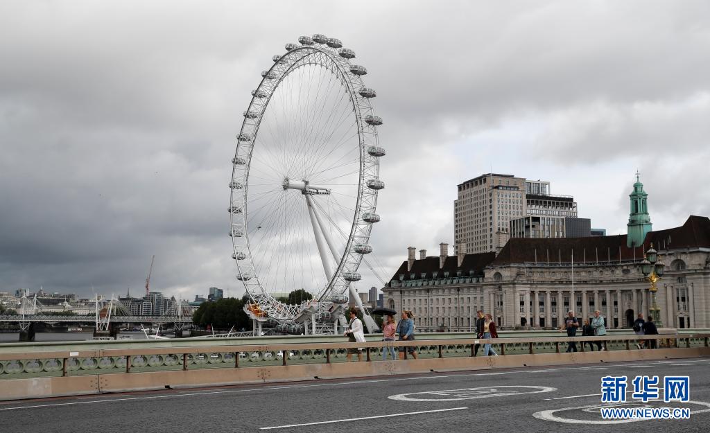 8月9日,人们从英国伦敦的“伦敦眼”附近走过。