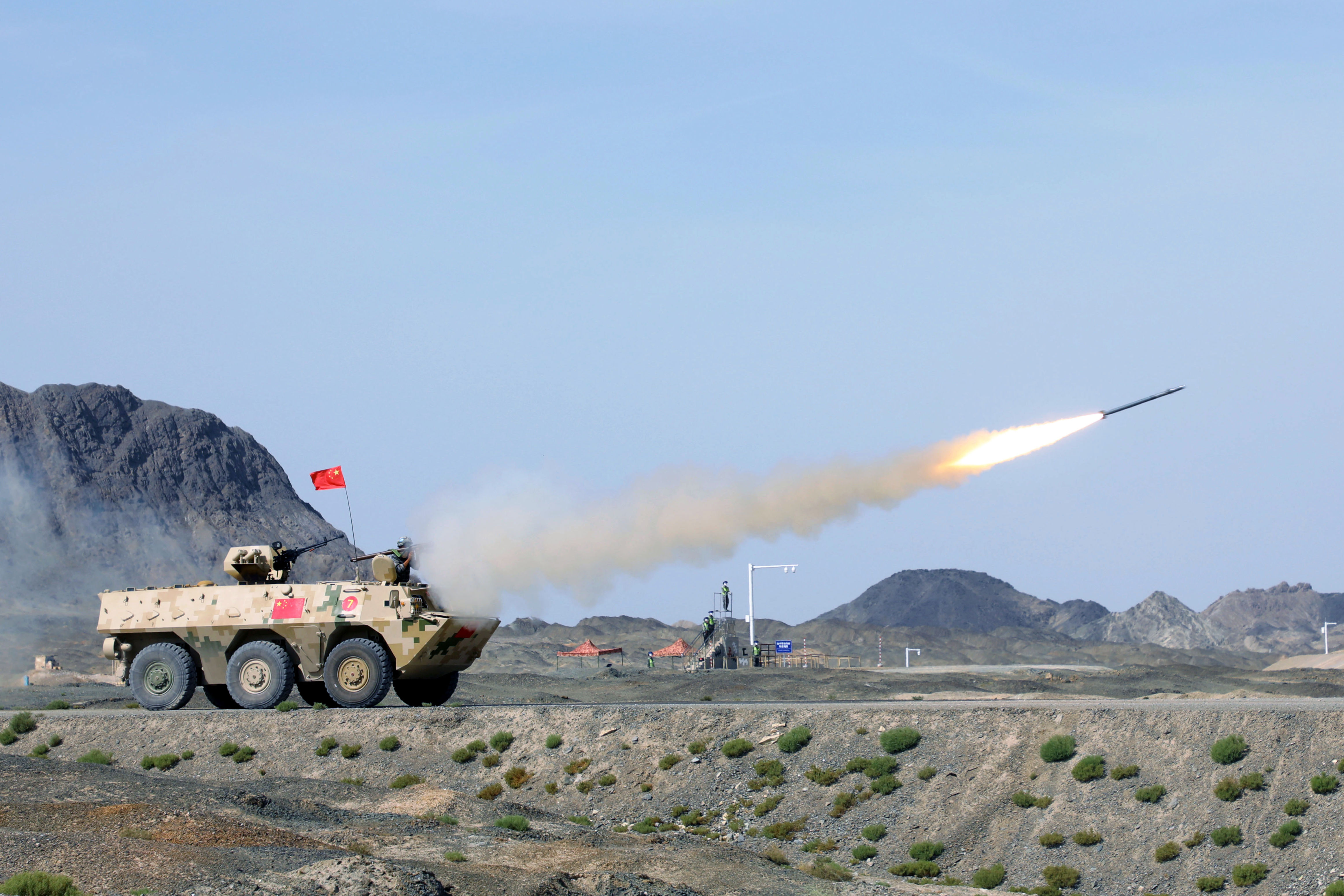 按照抽签顺序,乌兹别克斯坦和白俄罗斯参赛队完成比赛后,中国参赛队第3个出发。分队指挥员少尉王名君、主射手中士李增仲、射手中士次仁翁秋、机枪手下士彭鑫、驾驶员中士张雨泽均来自陆军第83集团军某旅。