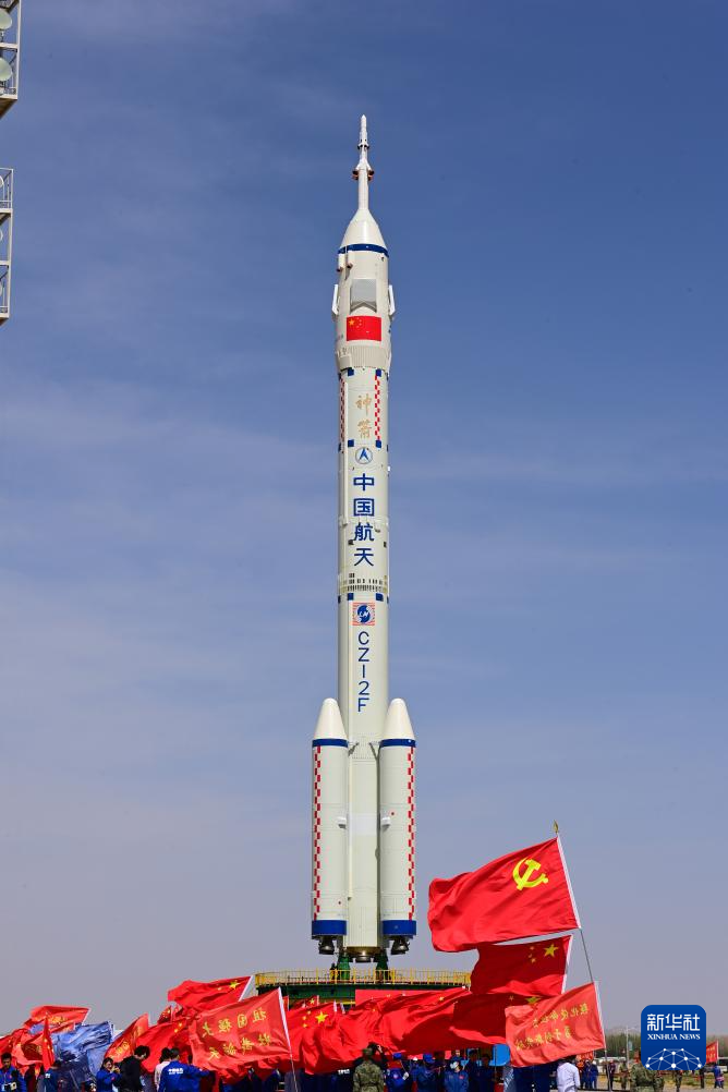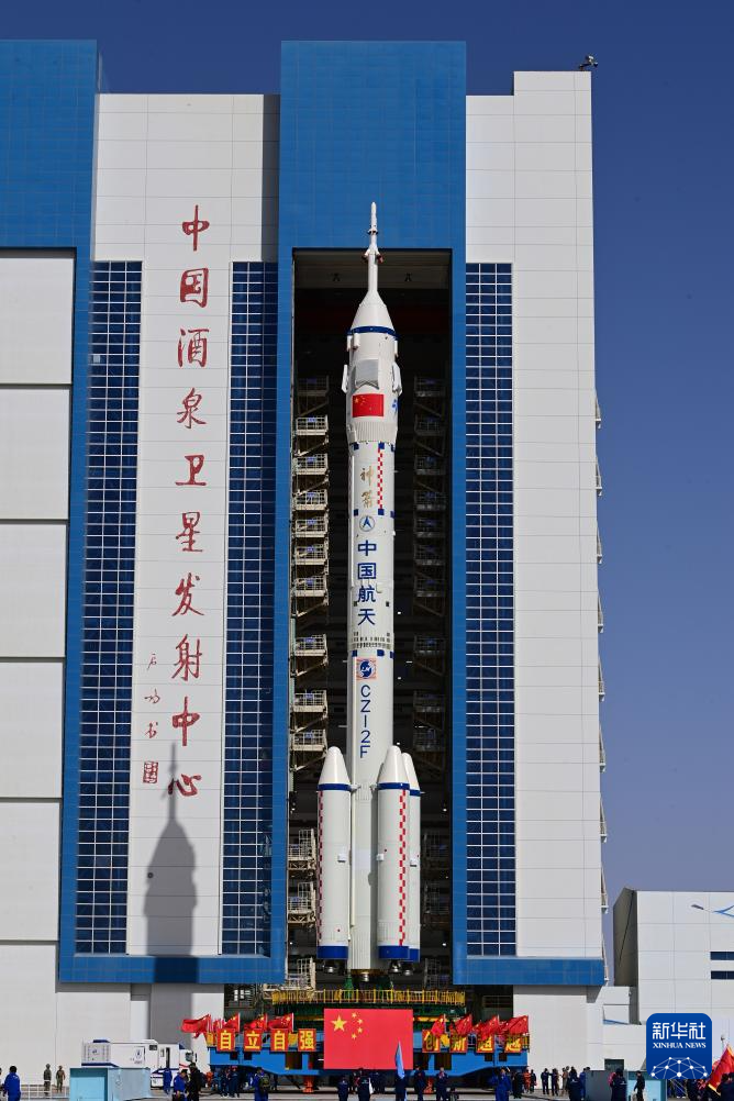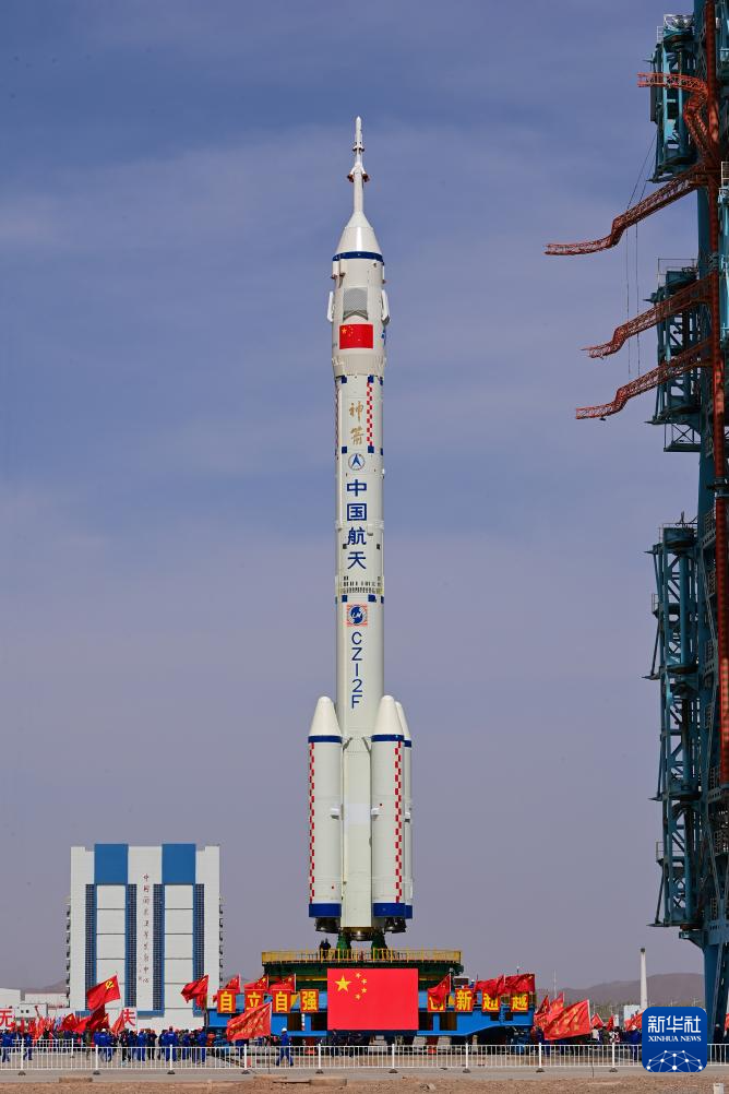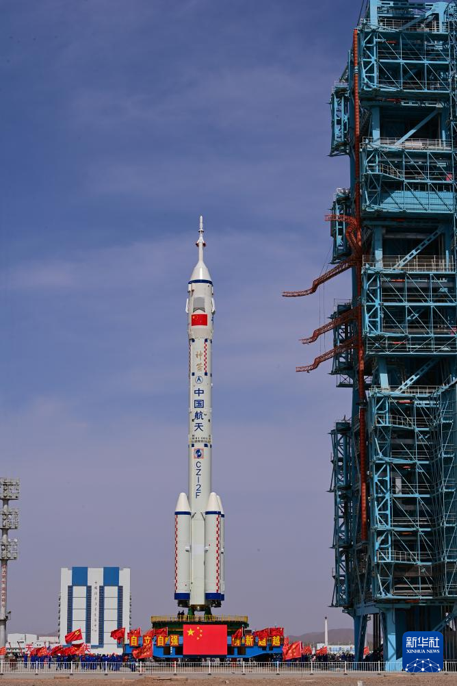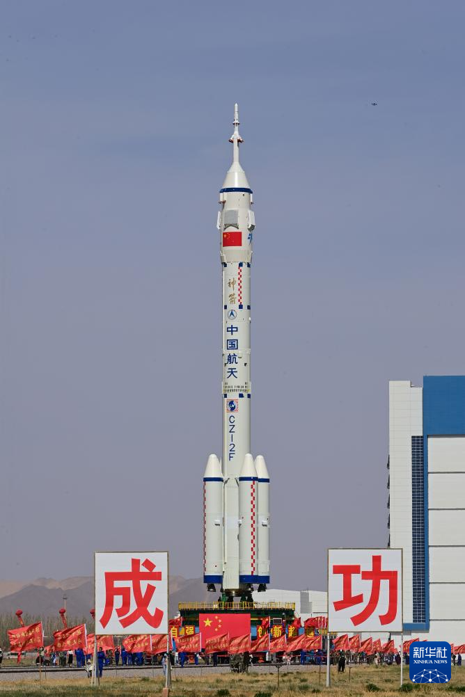 4月17日,神舟十八号载人飞船与长征二号F遥十八运载火箭组合体转运至发射区。