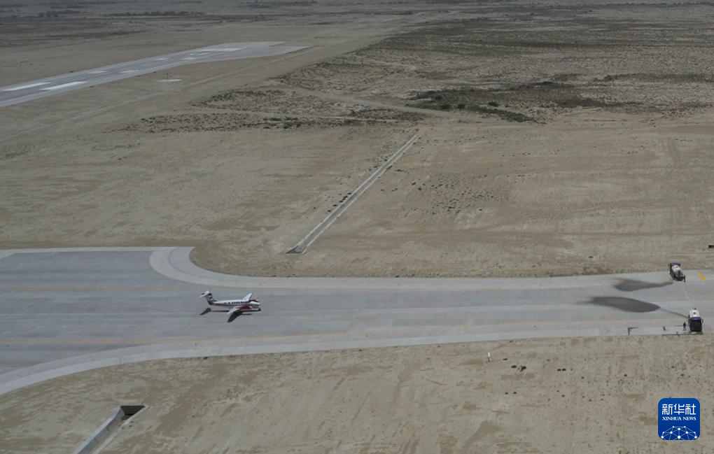 6月4日,在位于巴基斯坦瓜达尔的瓜达尔新国际机场,进行校飞试验的飞机成功着陆(无人机照片)。