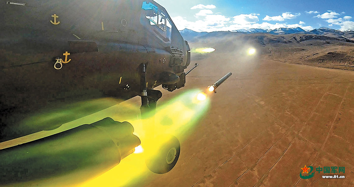 近日,西藏军区某旅开展直升机实弹射击训练,围绕低空突防、空中警戒、定点毁瘫等课目专攻精练,锤炼部队实战能力。