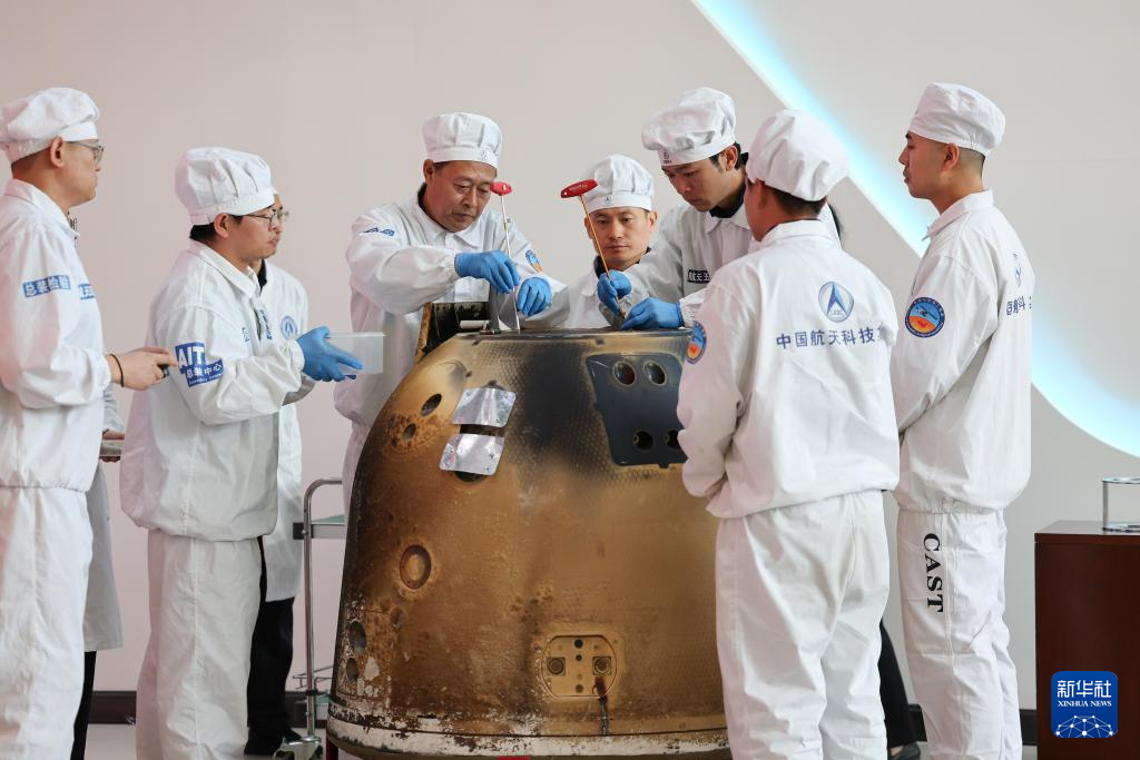 6月26日下午,嫦娥六号返回器开舱活动在中国航天科技集团五院举行。仪式现场,科研人员对嫦娥六号返回器进行开舱,检验关键技术指标完成情况。新华社记者金立旺摄