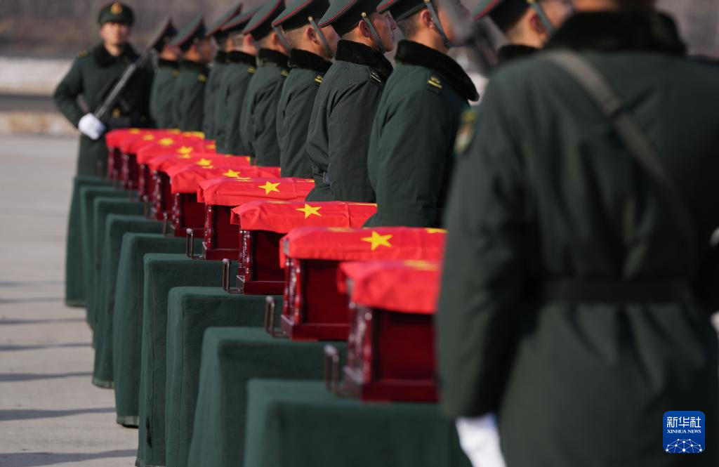 当日,第十一批在韩中国人民志愿军烈士遗骸回国。
