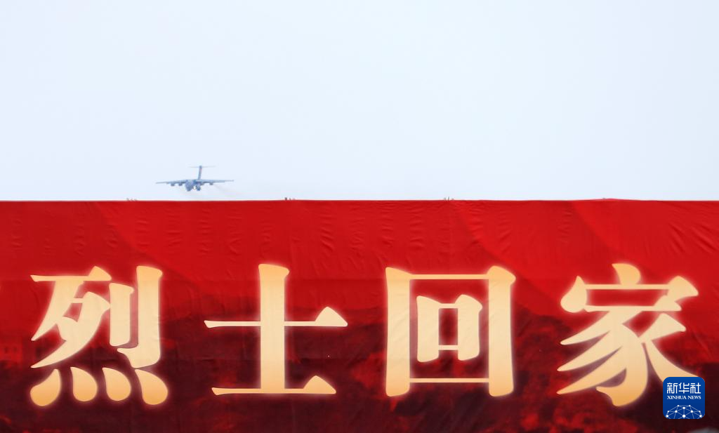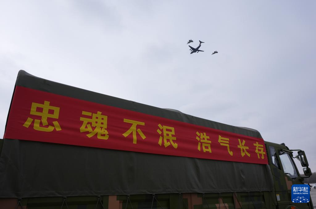 11月28日,接运第十一批在韩中国人民志愿军烈士遗骸回国的空军运-20专机抵达沈阳桃仙国际机场上空。