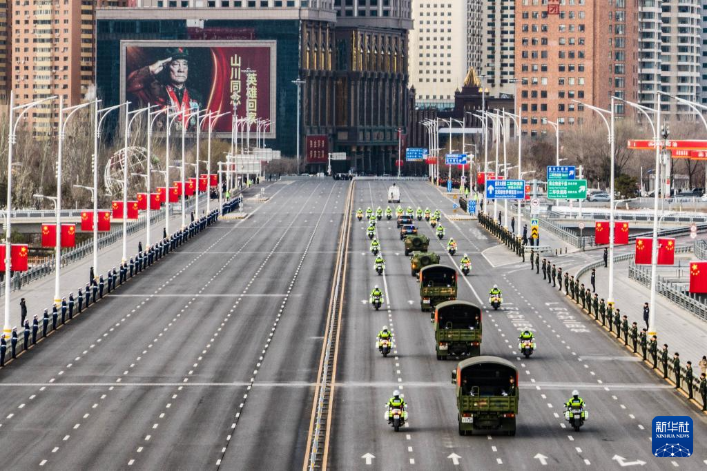 11月28日,运送志愿军烈士遗骸的车队经过沈阳青年大街(无人机照片)。