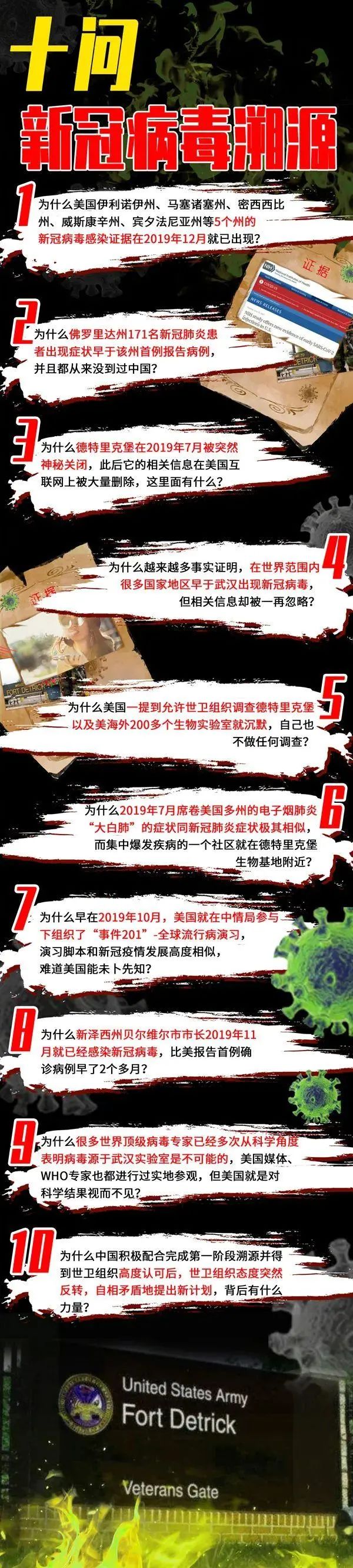 显然,这个结果让美国无法接受,其政客、媒体多次公然声称专家组被中国控制了,要求世卫组织再次进行调查,言下之意就是,即使没有证据也要制造证据,就是要把新冠肺炎病毒的源头,以及新冠肺炎世界范围流行的责任安在中国头上。