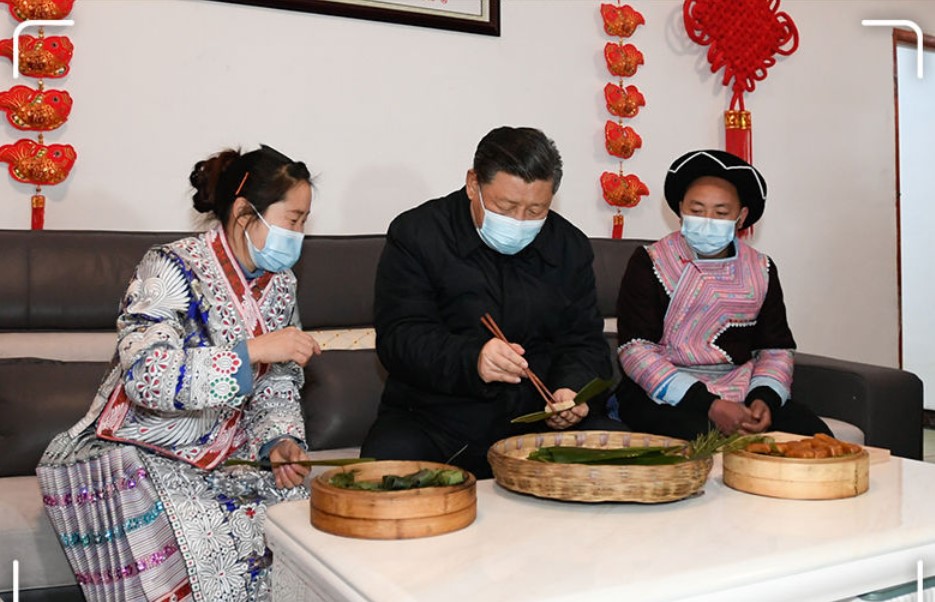 ↑2021年9月14日,习近平在陕西省榆林市绥德实验中学考察时,同师生亲切交流。
