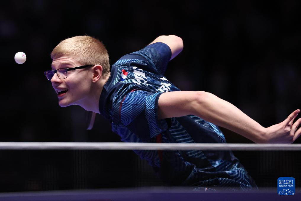 2月25日,中国队选手王楚钦在第一盘比赛中回球,他3比0战胜法国队选手费利克斯·勒布伦。