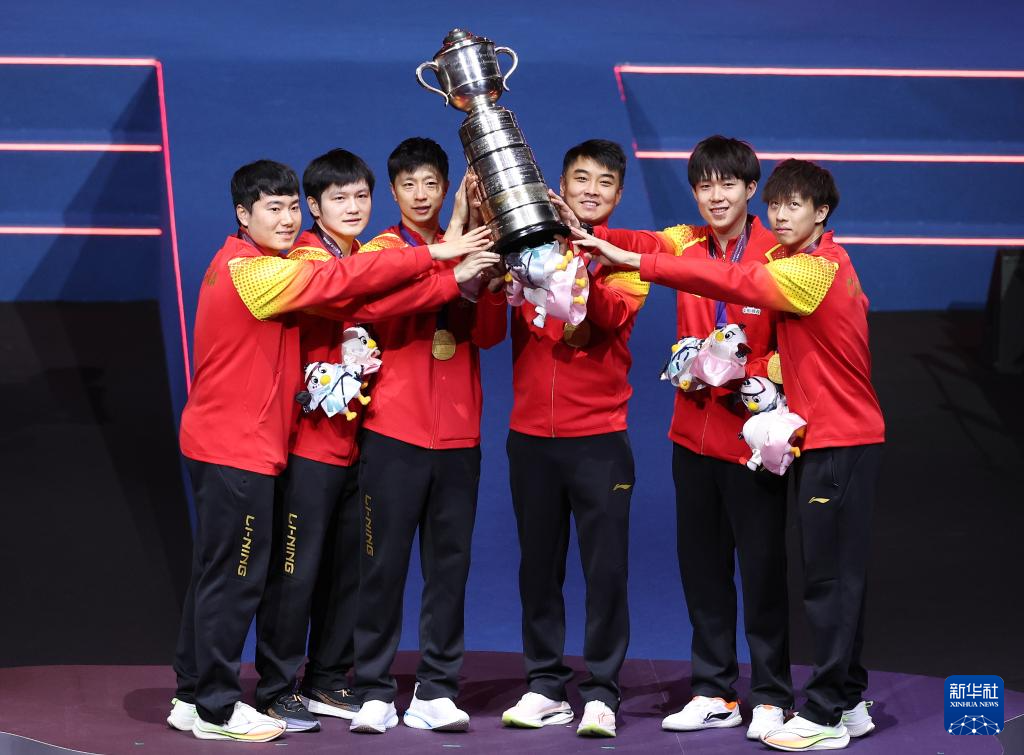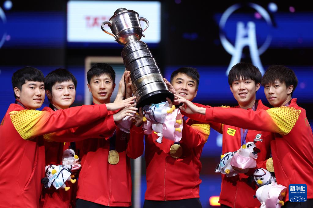 当日,在韩国釜山进行的2024年国际乒联釜山世界乒乓球团体锦标赛男子团体决赛中,中国队3比0战胜法国队,获得冠军。