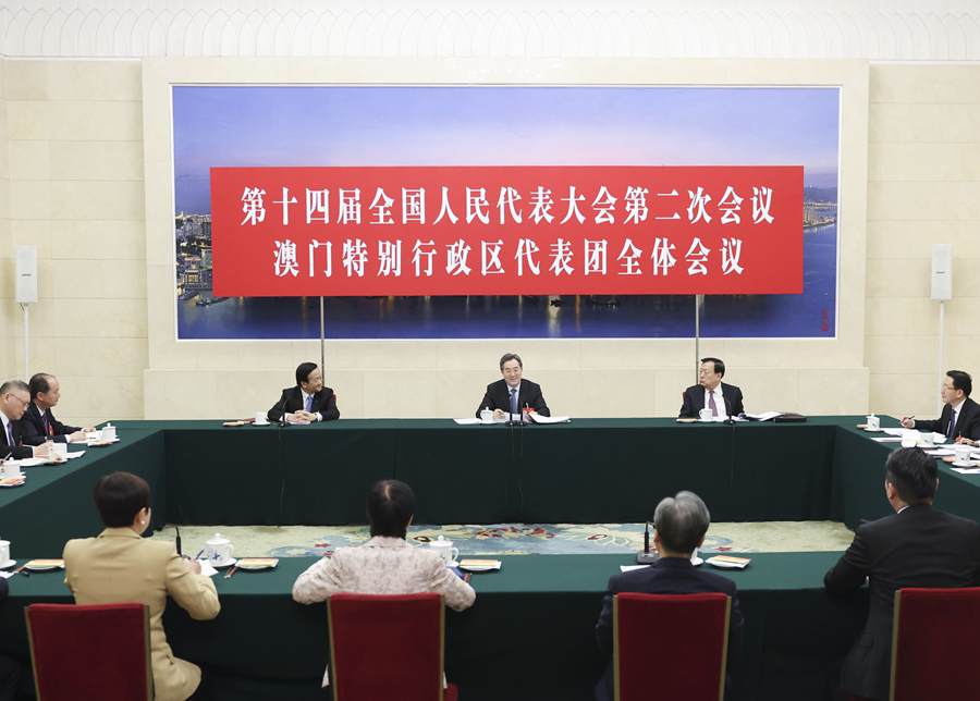 3月7日上午,中共中央政治局常委、国务院副总理丁薛祥参加十四届全国人大二次会议澳门代表团审议。新华社记者 丁海涛 摄