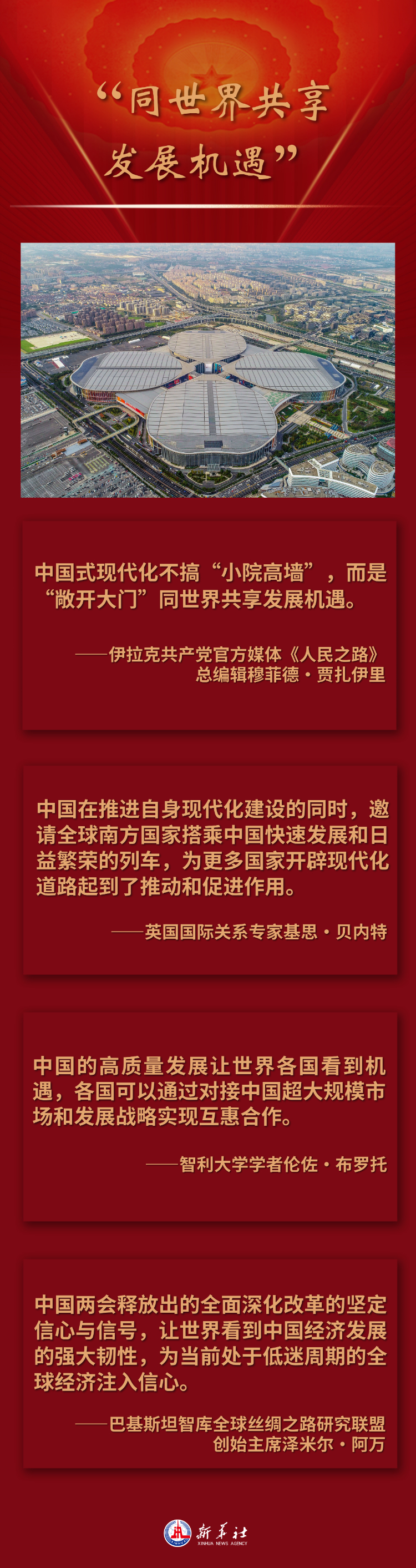 如何推动中国式现代化建设,是国际社会长期关注中国的一大焦点。透过中国全国两会窗口,国际舆论和海外人士看到,在中国式现代化的道路指引下,中国经济社会发展取得令人瞩目的成绩,给世界各国带来合作共赢的新机遇,中国式现代化为人类实现现代化提供了新选择,为发展中国家拓展现代化路径提供了有益启示。
