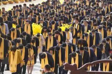 共拜始祖。现场全体人员面向黄帝像,庄严肃立,满怀崇敬之情行施拜礼,深深三鞠躬。