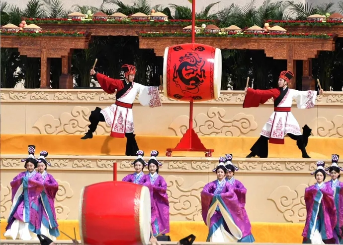 乐舞敬拜。重新建构的汉代《建鼓舞》精彩呈现,伴随着悠扬的音乐,舞者相向击鼓、变换舞步,舞姿曼妙,鼓声在耳。