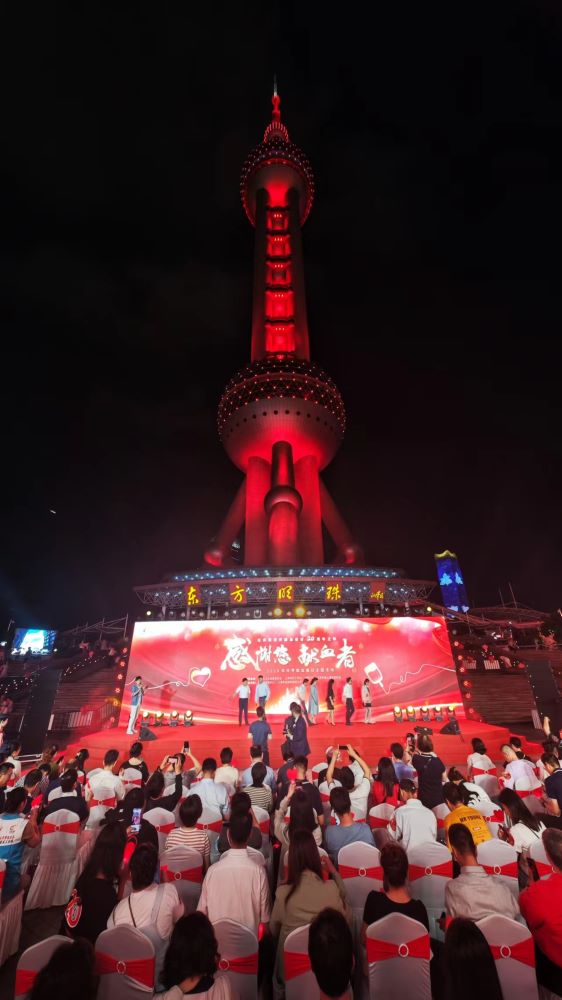 当晚,上海市血液中心和上海市血液管理办公室,在上海东方明珠城市广场举办了名为“感谢您,献血者”的世界献血者日主题宣传活动。献血者、志愿者以及合作伙伴们欢聚一堂,共同分享这份献血带来的喜悦与荣誉。夜幕降临,东方明珠广播电视塔、上海中心等城市地标建筑纷纷亮起“生命红”,向所有无偿捐献热血、拯救患者生命的献血者们致以最崇高的敬意与感谢。