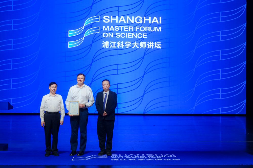 作为当代最杰出的数学家之一,奥昆科夫解决了多个重要猜想和重大问题,在表示论、代数几何、动力系统、组合学、概率论、弦理论、统计力学等多个领域做出了奠基性的工作成果,并以将概率论、表示论和代数几何相互联系的工作荣获2006年菲尔茨奖。上海市政协副主席吴信宝出席讲坛并为安德烈·奥昆科夫教授颁发“主讲科学家”纪念证书。