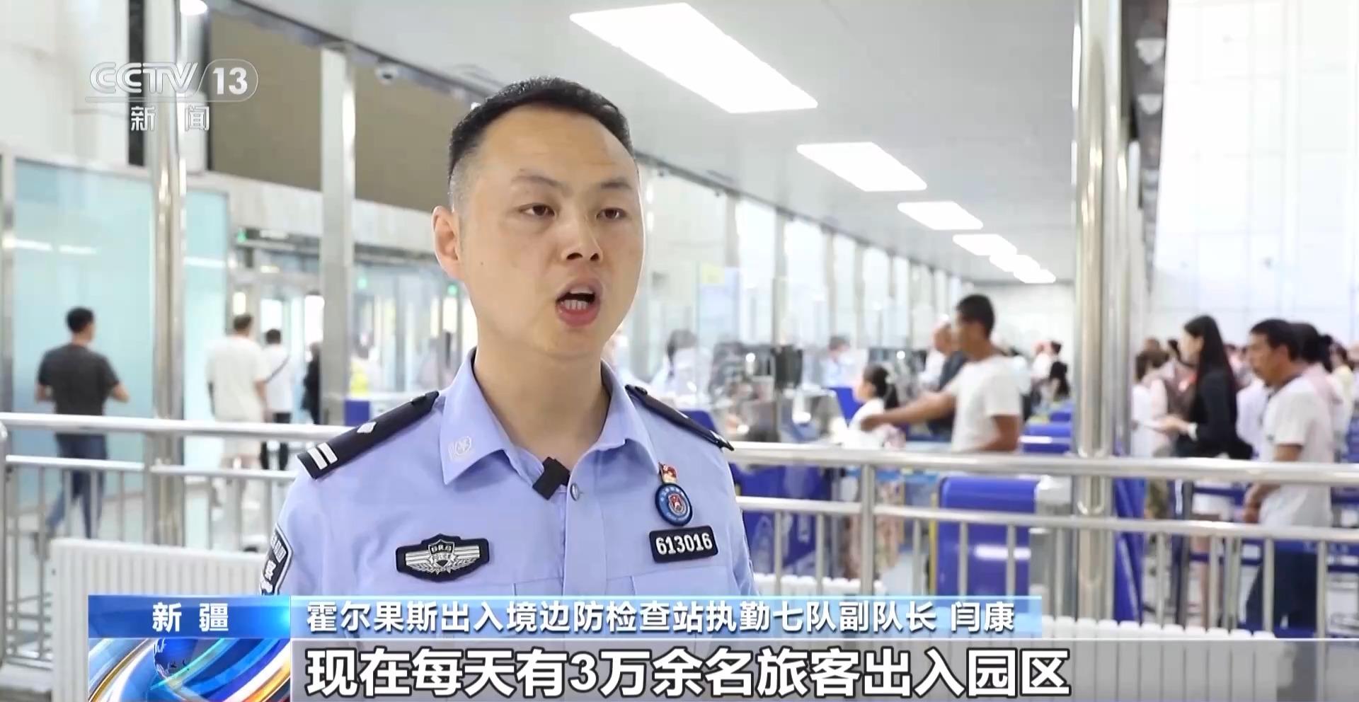 霍尔果斯出入境边防检查站执勤七队副队长 闫康:现在每天有3万余名旅客出入园区,早上客流高峰,会实行“错时通关”举措,提前1个小时开启快捷查验通道,有效削减早高峰;如遇有大型赛事和综合展会,实行“预约通关”举措,最大限度保障出入境旅客安全顺畅通关。
