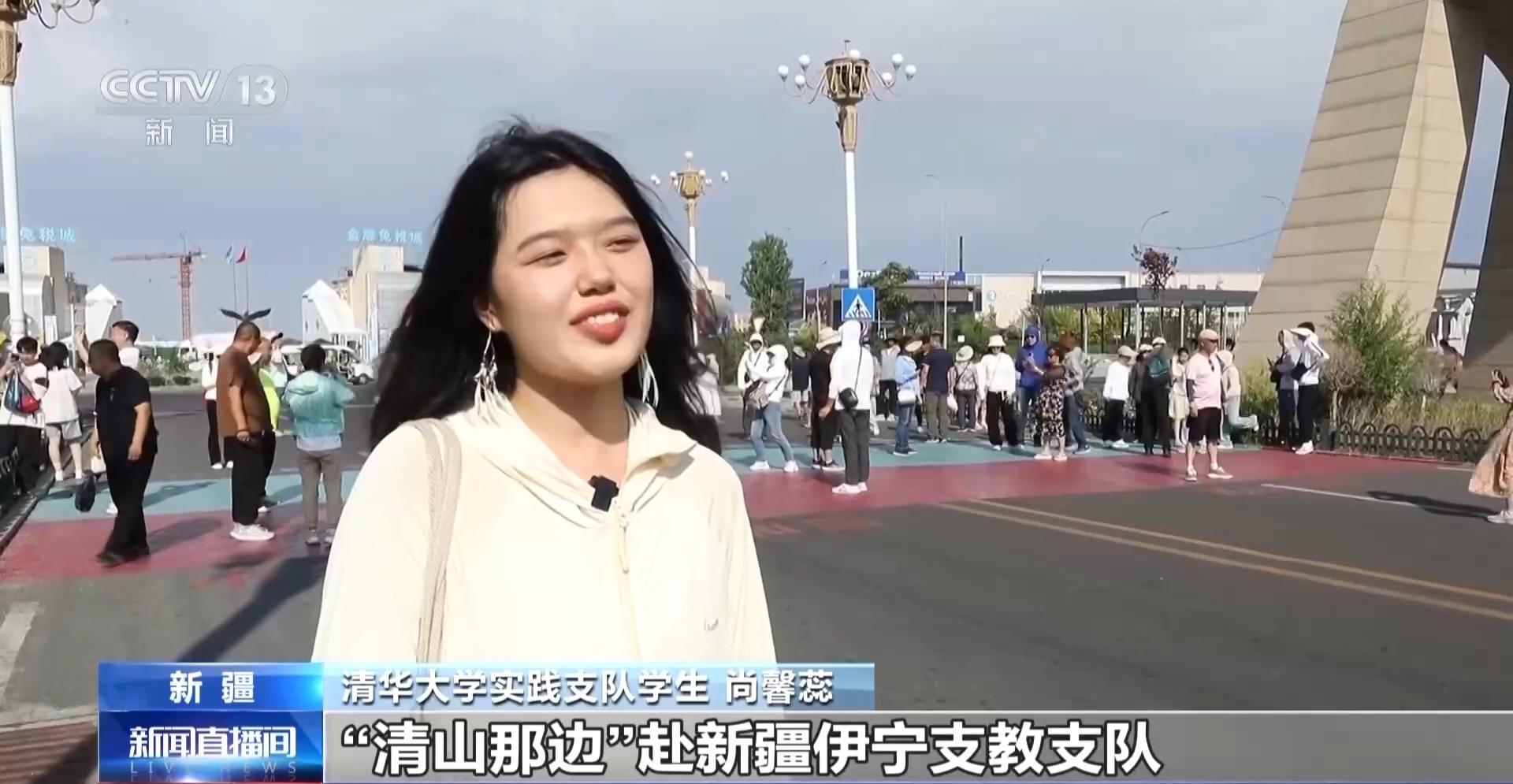 清华大学实践支队学生尚馨蕊:我们是第一次来新疆,我们来自北京清华大学“清山那边”赴新疆伊宁支教支队,到这个地方来参观一下,不仅能体验到哈萨克斯坦的异域风情,还可以感受一脚踏两国的特殊体验,而且还能购买到来自全球的免税商品,所以我们就慕名而来体验一下。
