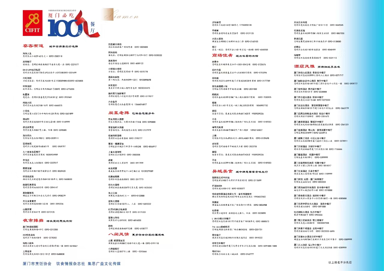 厦门必吃100家餐厅榜单发布
