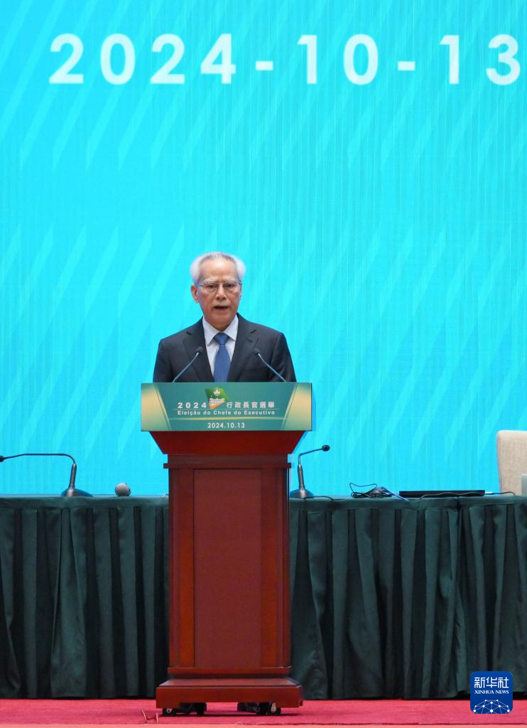 新华社澳门10月13日电(记者刘刚、查文晔、李寒芳)澳门特别行政区第六任行政长官选举13日举行,岑浩辉以394张有效票高票当选成为第六任行政长官候任人。