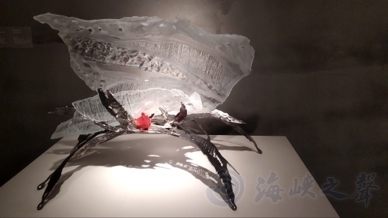 《蝴蝶钳》也是埃里克.邦特此次展出的作品里非常独特的一件创作。作品乍看之下像一只蝴蝶,但如果分开玻璃和铁架,可以很明显地看出贝壳与蟹钳。埃里克.邦特还刻意地在作品加上一抹红,也是这次展出作品里除了黑、白、金色系以外唯一的颜色。从这件作品可以看出埃里克.邦特对大自然的欣赏,特别是他对海洋的热爱。