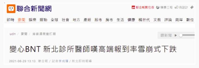 台湾自产“高端”疫苗开打5日6人死亡 施打率跌一成