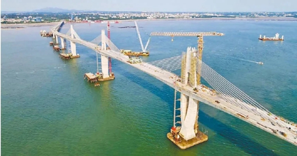 连接大、小金门岛的金门大桥预定在今年10月完工通车。(图片取自台媒)