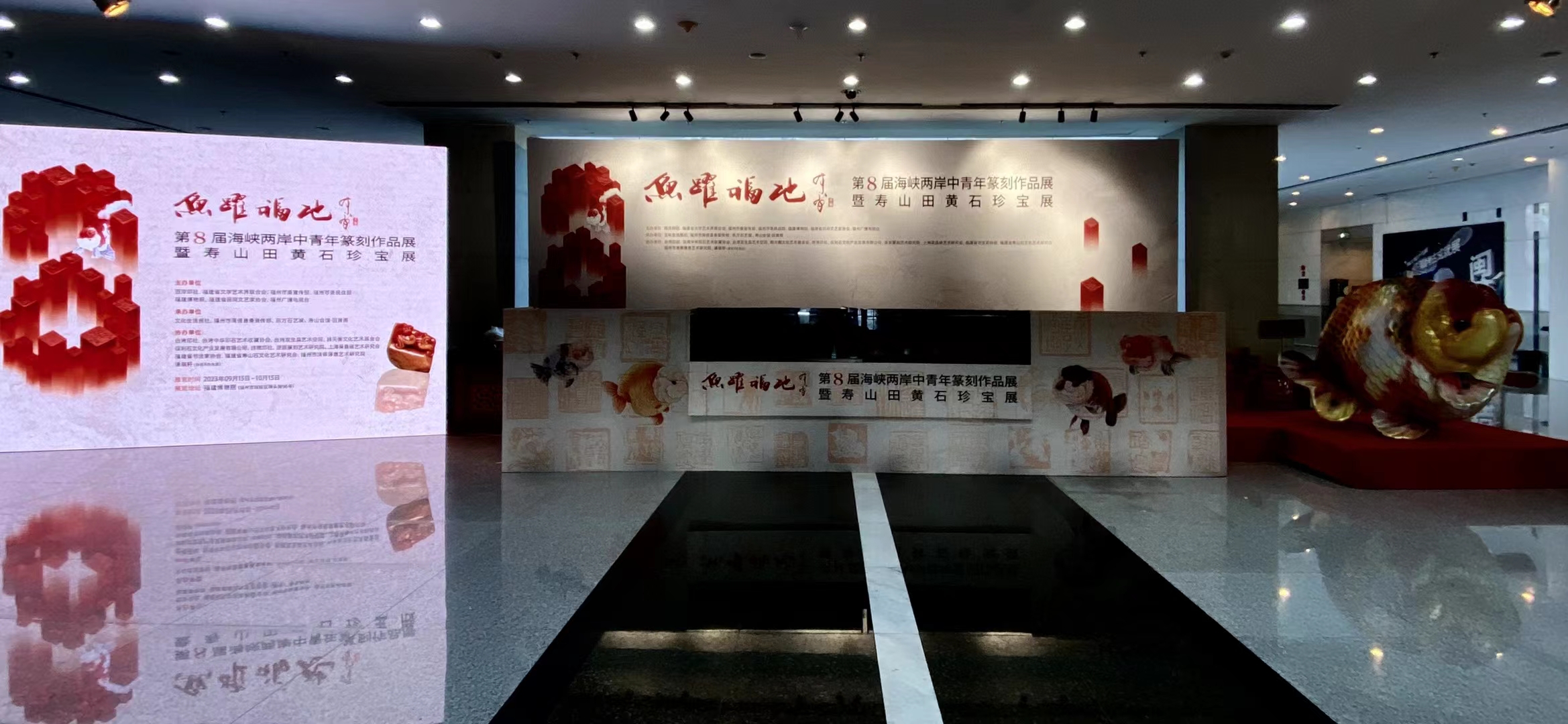 “鱼跃福地”第八届海峡两岸中青年篆刻展暨寿山田黄石珍宝展开幕,台湾青年14件作品入展