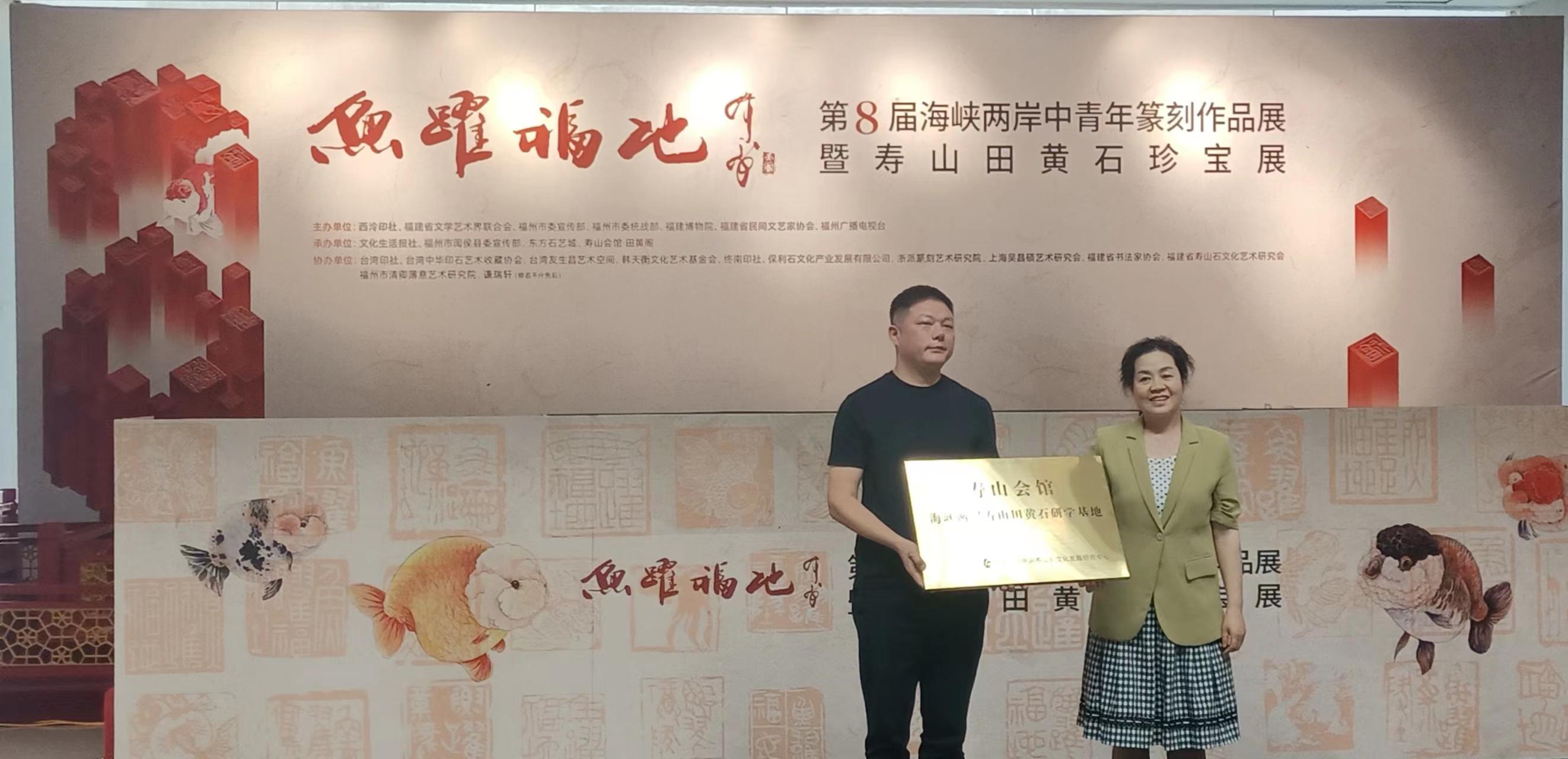 艺术的生命力在于一代代人的传承。展览开幕式上,中国民协中国寿山石文化发展研究中心授予寿山会馆海峡两岸寿山田黄石研学基地的称号,希望更多的人借助这个平台,认识田黄石、了解田黄石、爱上田黄石,从而传承石雕艺术,弘扬寿山石文化。