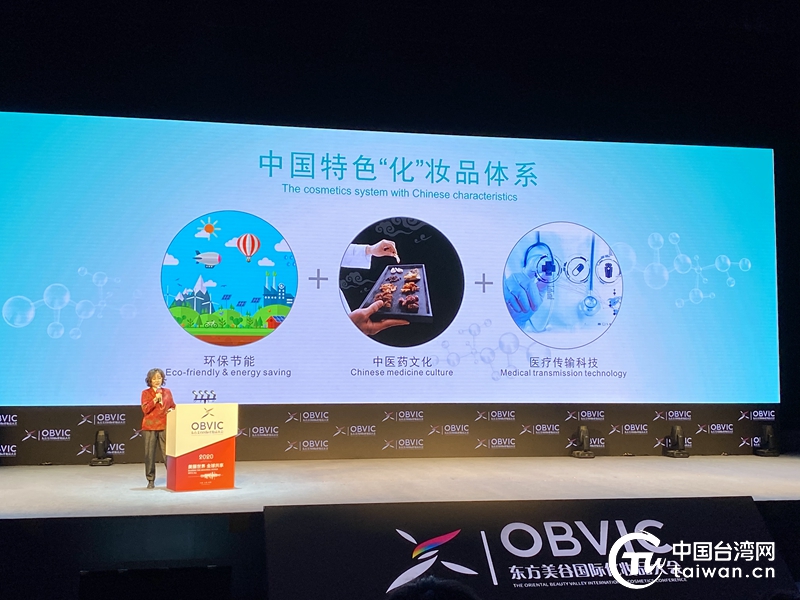 2020年11月9日上,东方美谷国际化妆品大会如约而至。活动上,郭襄颍在演讲中介绍“中国特色化妆品体系”。(中国台湾网 发)