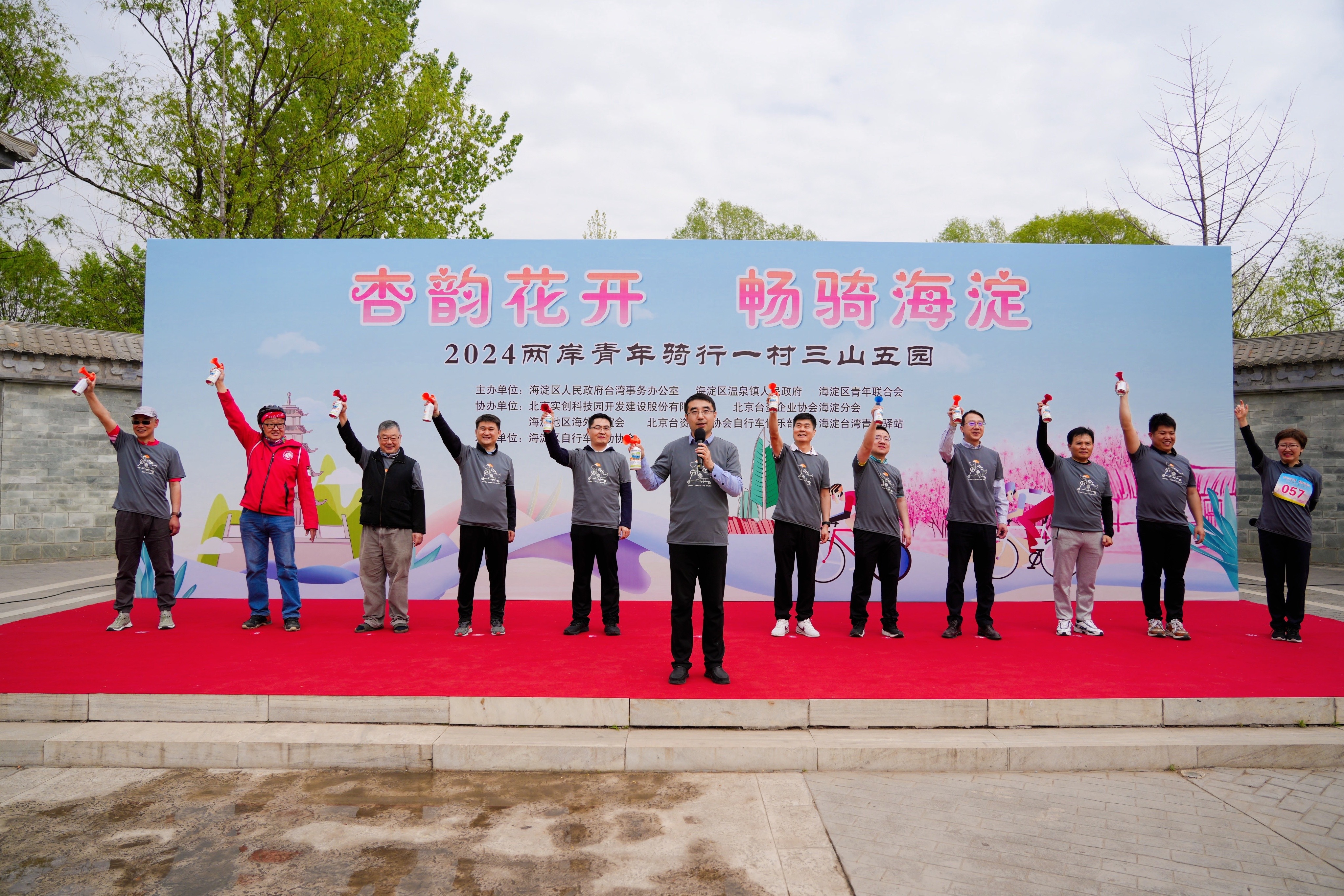 海峡之声广播电台北京讯(记者 洋洋)4月20日,由北京市海淀区台办、温泉镇人民政府、海淀区青联共同主办的“杏韵花开 畅骑海淀——2024两岸青年骑行一村三山五园活动”在中关村科学城北区温泉镇启动,海淀区青联委员、台青台生台商代表等两岸青年及嘉宾共计70余人参加骑行活动。市台办副主任张磊宣布骑行活动正式开始,区委常委、副区长徐振涛出席活动并致辞。