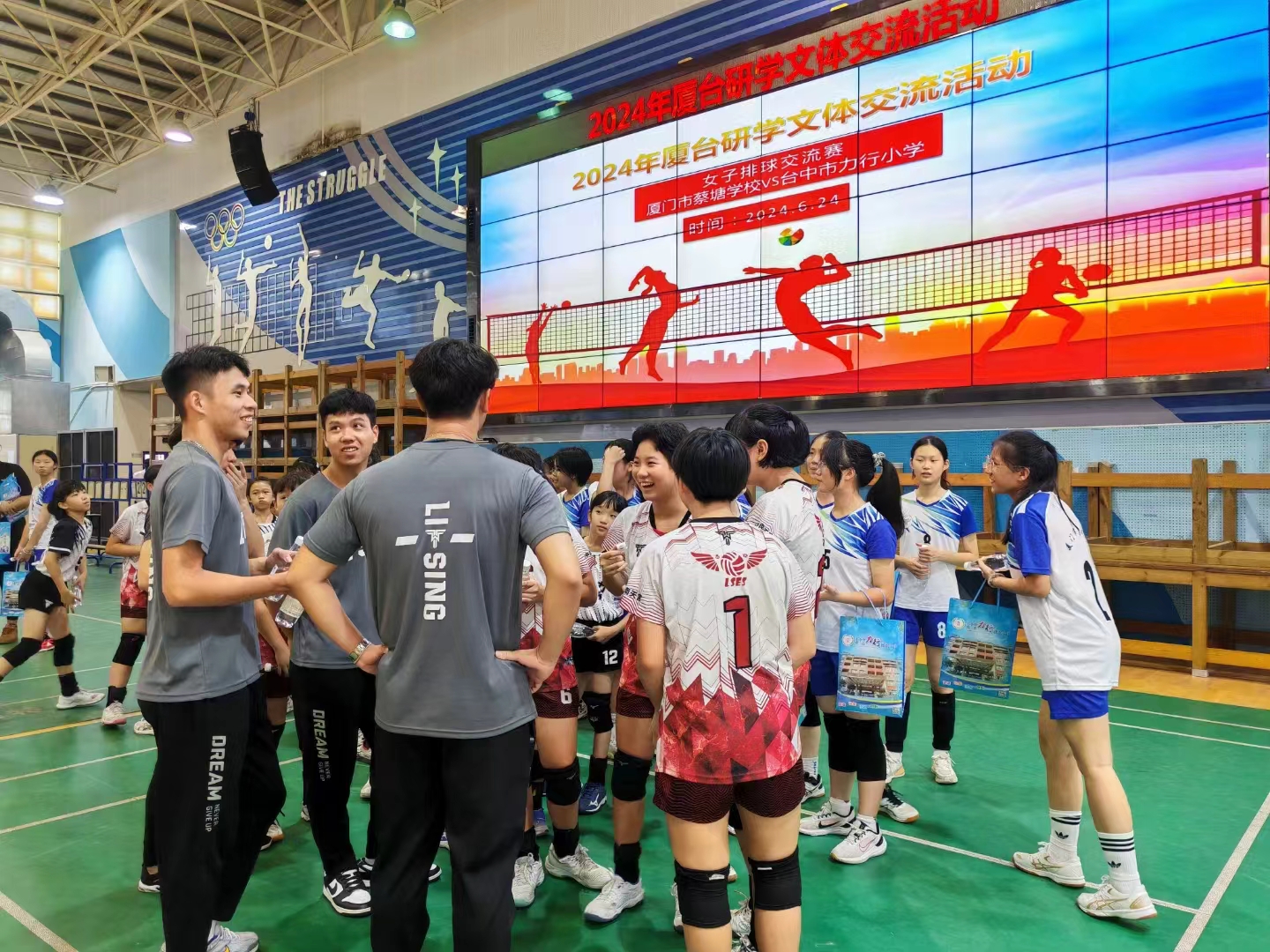 海峡之声广播电台6月25日厦门消息(记者 陈必扬)24日下午,“台中小学”数十名学子来到厦门市蔡塘学校开展文化教育交流活动。两岸学子齐聚一堂,观看追光美术团饱含中华民族文化艺术的作品展、参观凌云玉石博物馆、进行排球交流赛、种友谊树、互赠亲手制作的礼物等活动。