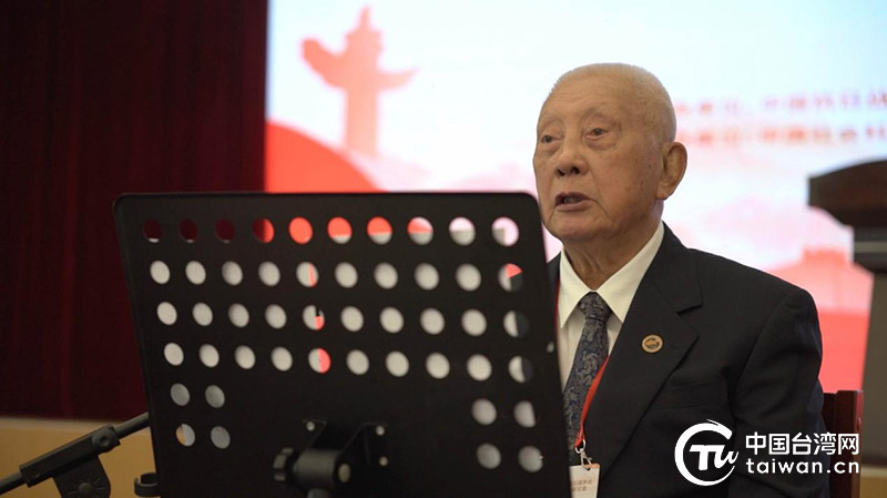 中华民族抗日战争纪念协会荣誉理事长、台湾退役将领陈廷宠在开幕式上致辞。(云南省台办 供图)