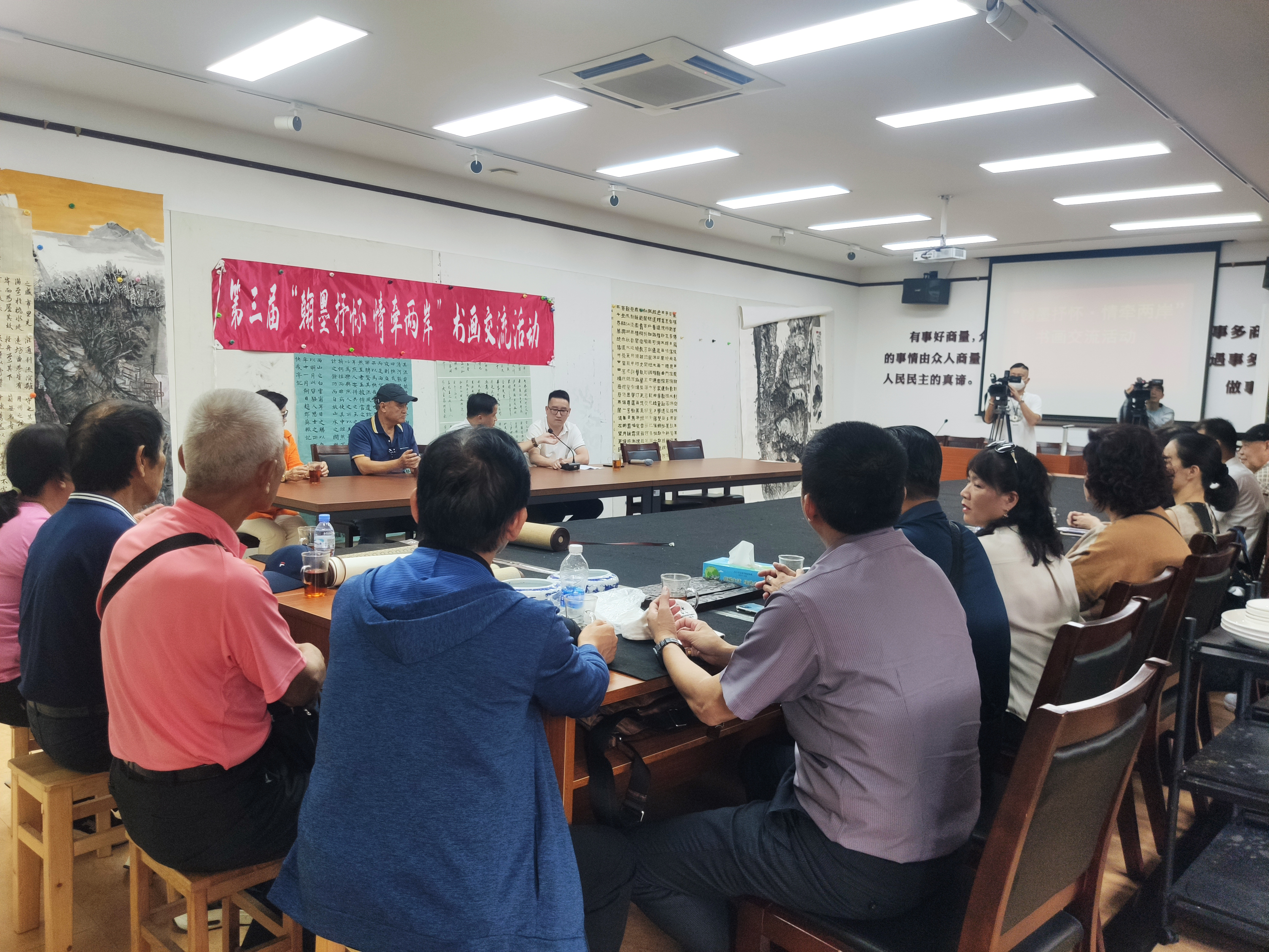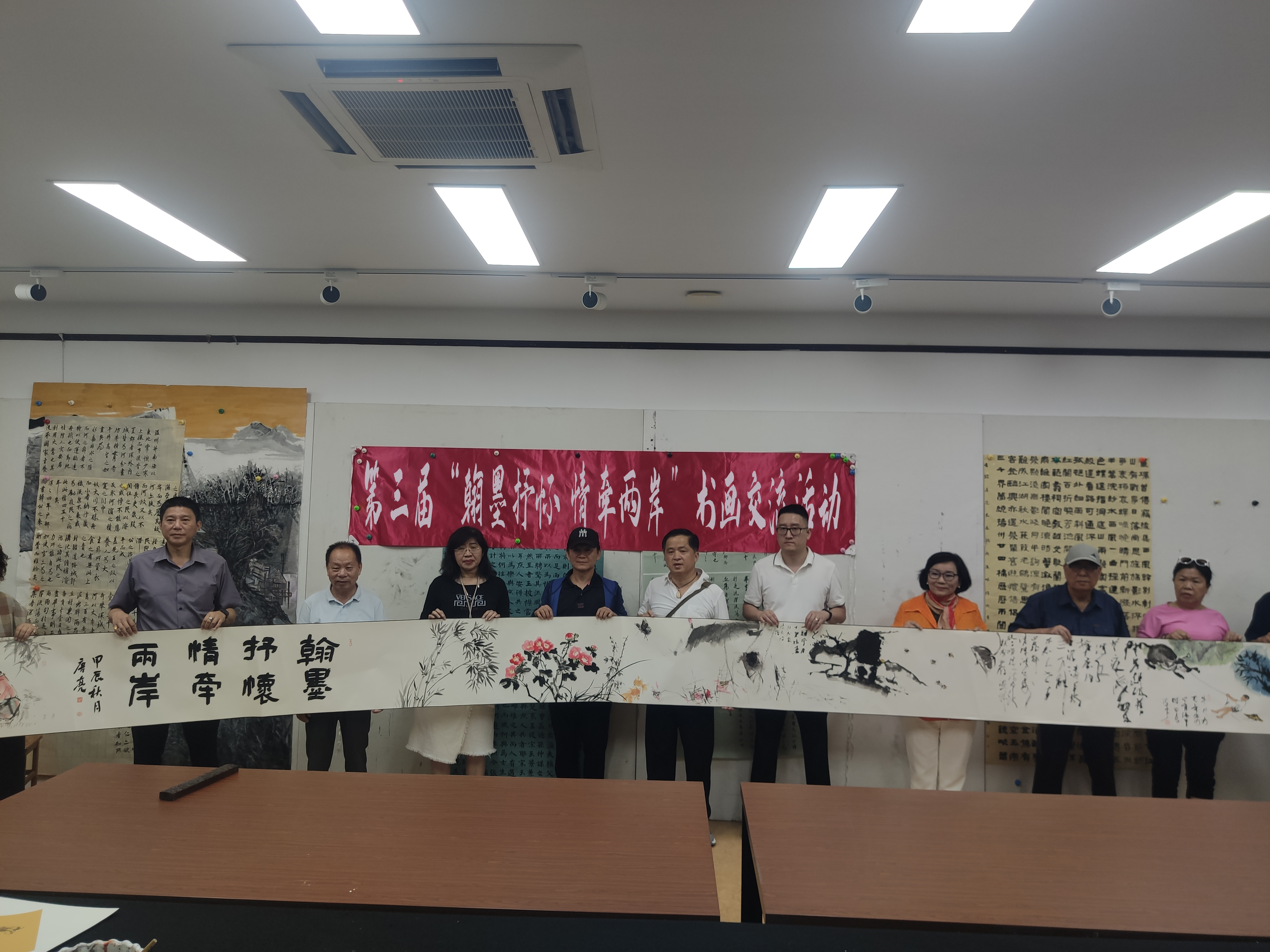 活动现场,墨香四溢,气氛热烈而又不失温馨。两岸书画家结合自身的创作、实践,畅谈书画感悟,挥毫泼墨,携手创作了一幅以“两岸一家亲”为主题的巨幅画作,展现出两岸文化交融的美好图景,也传达两岸书画艺术家对扩大两岸民间文化交流、深化两岸融合发展的期许与向往。