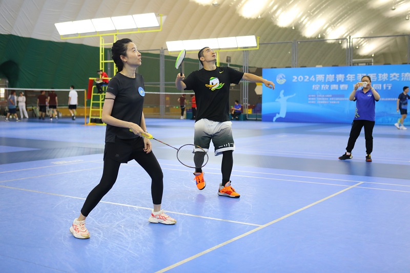 据悉,本次交流赛作为2024两岸青年峰会系列活动之一,旨在以“球”会友,以“赛”传情,搭建起两岸青年互学互鉴、聚智聚力的友谊之桥。比赛设单打、双打、混双等项目,采用两岸青年混合组队的方式,开展交流比赛。比赛现场战况激烈、精彩纷呈。选手们随球跑动,弹跳扣杀、网前挑球等技术发挥得淋漓尽致,展现出了顽强拼搏的体育精神和积极向上的良好风貌。此次活动还安排了同心球、投壶等传统体育项目,让两岸青年共同体验中华传统体育运动,弘扬中华体育精神。活动彰显了两岸青年奋发进取的体育精神,使两岸台胞在竞技中增信,在交流中交心,促进来两岸同胞心灵契合。