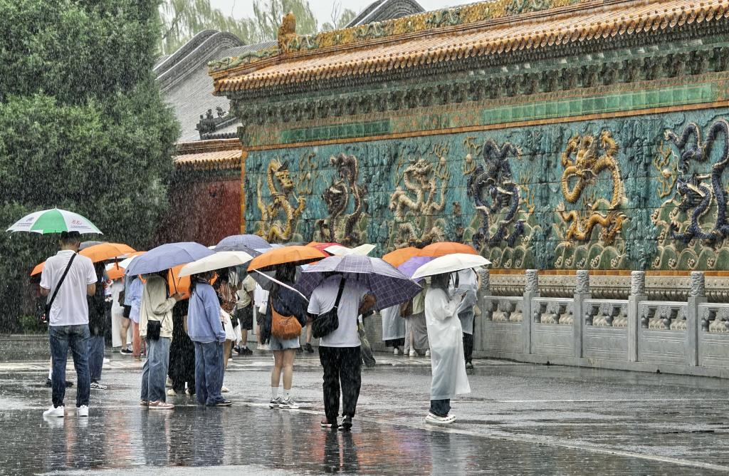 不期而遇的雨中故宫,显得很特别。太和殿前,雨水从一处处螭首形的孔洞排出,形成“千龙吐水”奇观。古人精妙的排水系统至今仍在发挥功用,让在场的年轻人发出赞叹。