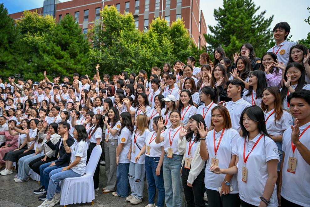 结营式上,两岸学子展示了新鲜出炉的作品,表达对美好旅程和真挚友谊的珍视:使用AI工具谱写歌曲《两岸亲缘》,唱出“两岸一家亲,从来不分离”;以拟人化的大熊猫与台湾黑熊象征两岸朋友,回顾此行“高光时刻”;创作音乐视频《新中国话》,展示两岸年轻人日常用语的同与不同。