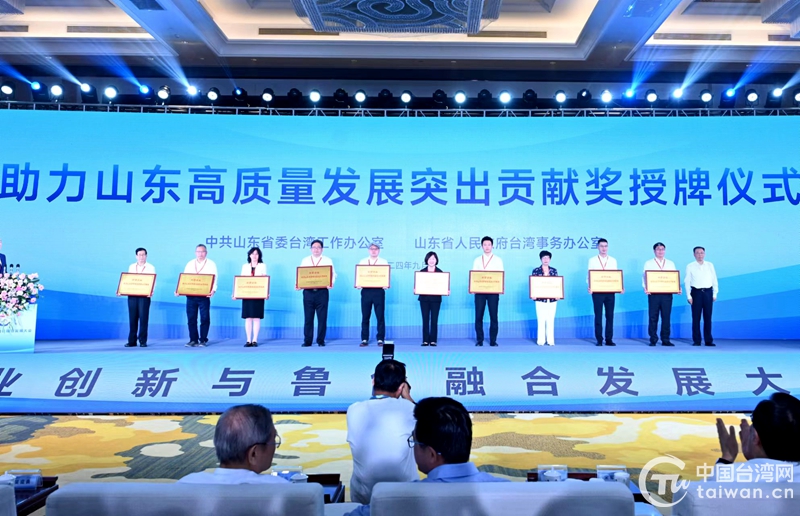 在开幕式的文化大集上,来自台湾的60余幅书画作品,与泰山剪纸、木版年画、瓷绘等各式各样的“非遗大餐”一道,出现在展位上,吸引了观众或驻足询问,或近距离观赏。