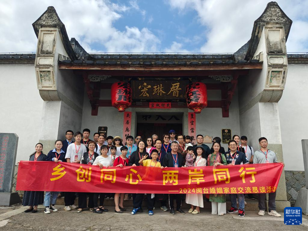 10月13日,2024年闽台婚姻家庭交流恳谈活动参与者在闽清县宏琳厝前合影(手机照片)。新华社记者 许雪毅 摄