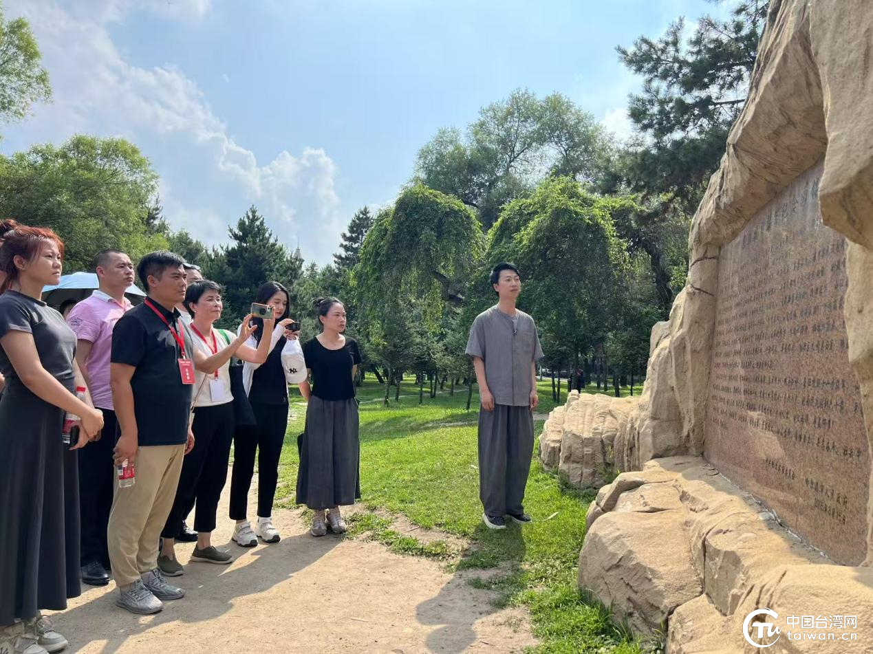 两岸青年在浮雕墙前回顾东北抗联14年艰苦抗战史。(中国台湾网记者 刘琳 摄)