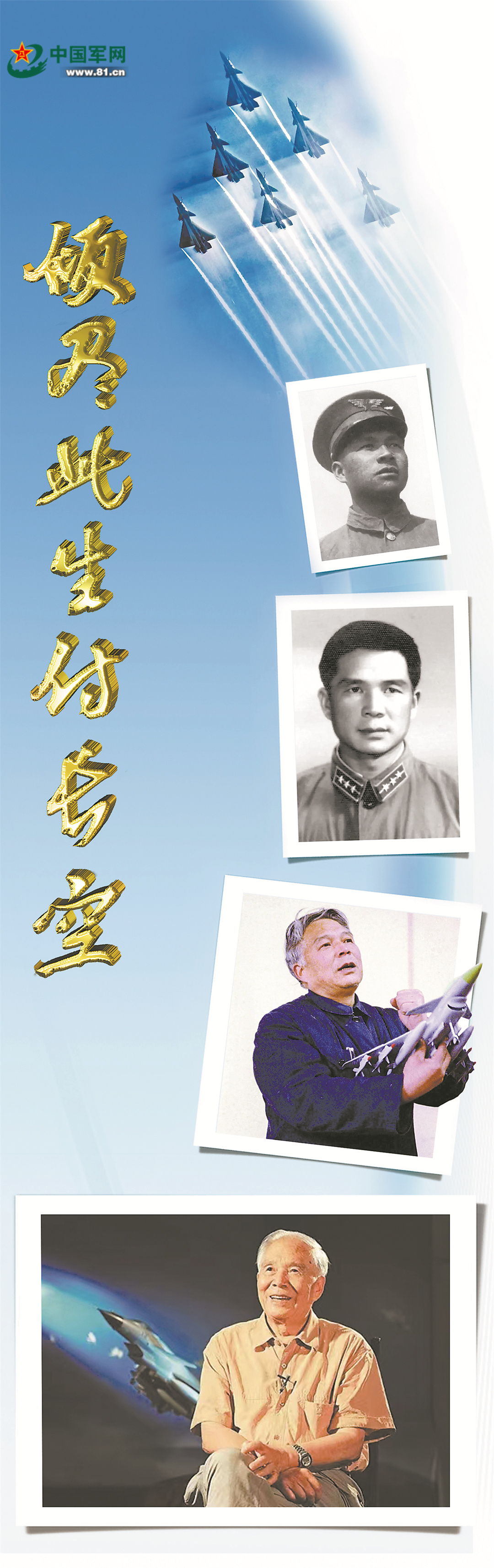 人们无从知道,此时他在想些什么——或许,他想起童年时,日本飞机在家乡狂轰滥炸的情形;或许,他想起少年时心中怀揣的蓝天梦;或许,他想起几十年来,披星戴月、攻坚克难的岁月……