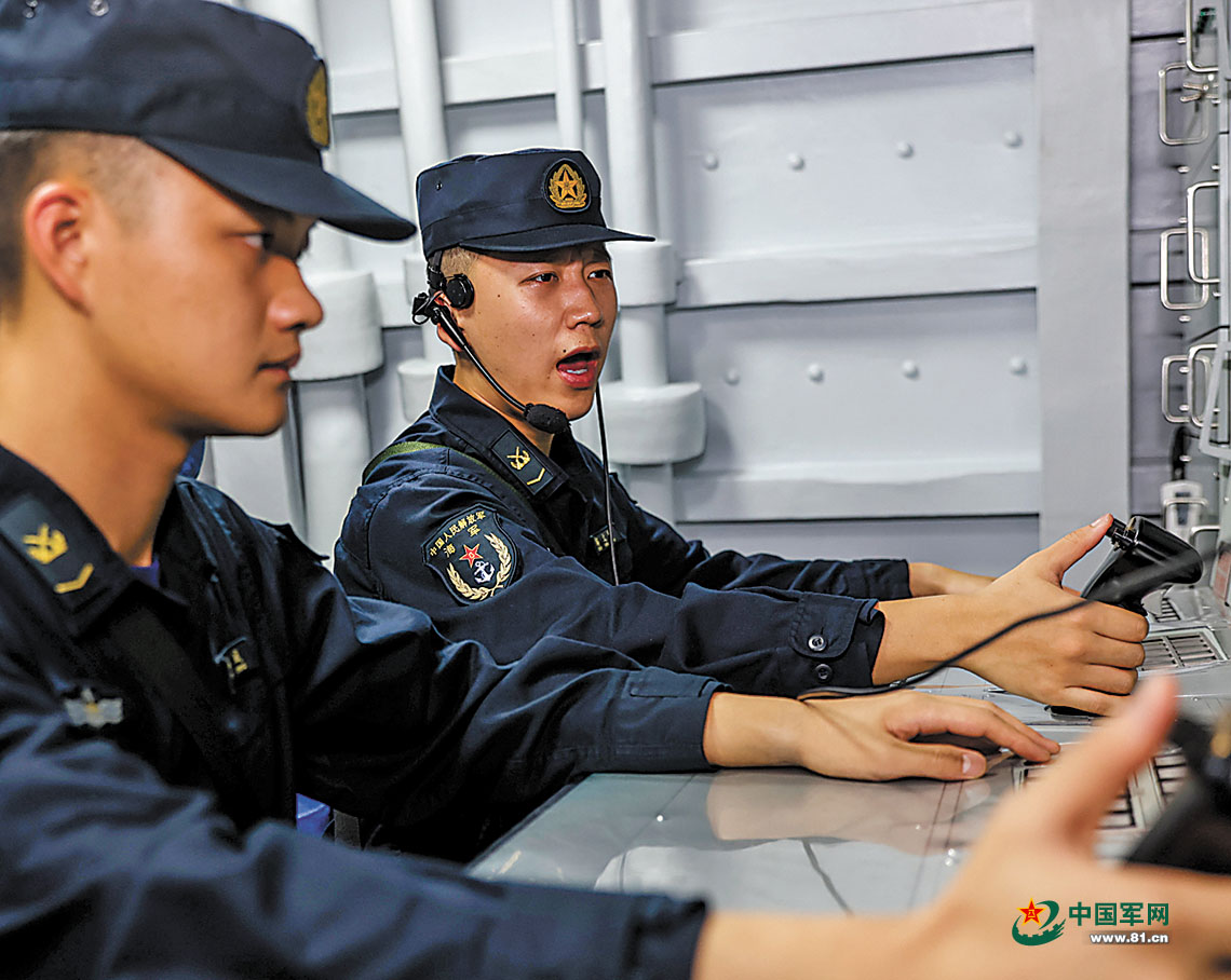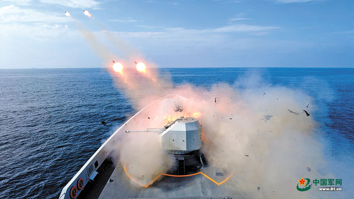 秋夜,海军某驱逐舰支队舰艇编队正在某海域破浪前行。突然,急促的警报声响起,一场编队对岸打击训练随即展开。