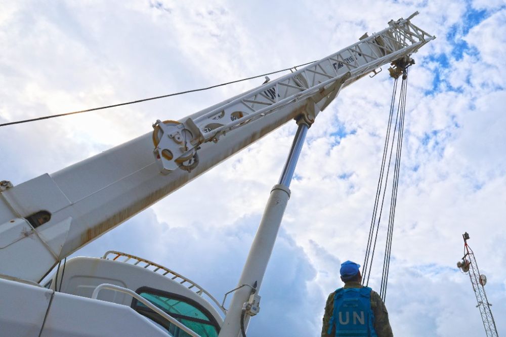 经过2天紧张准备、2天连续作业,中国维和官兵顺利完成T型墙吊装转运任务。