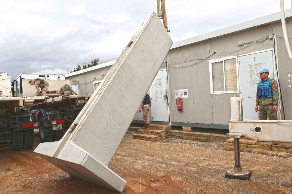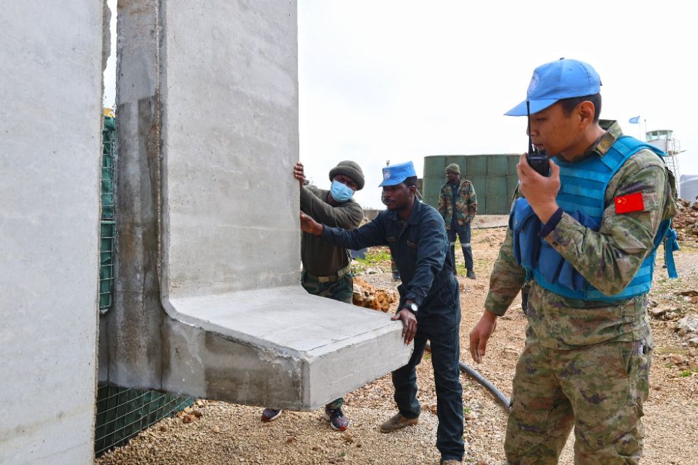 近日,中国第22批赴黎巴嫩维和建筑工兵分队派遣施工作业组前往黎以临时边界附近,援助加纳营顺利完成1-21和1-0A营区T型墙吊装任务。