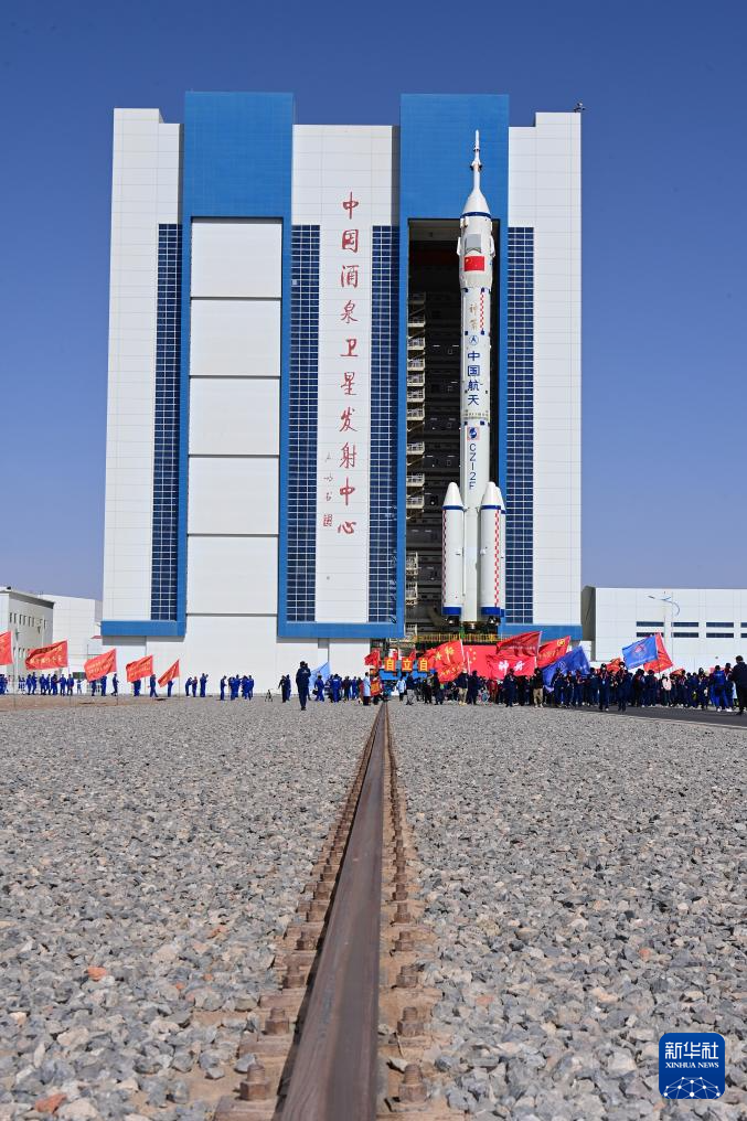 4月17日,神舟十八号载人飞船与长征二号F遥十八运载火箭组合体转运至发射区。