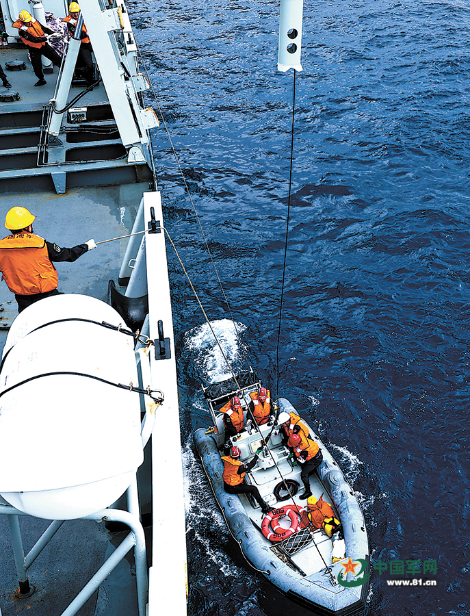 吊放小艇,开展搜救。