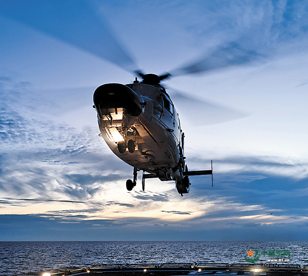 舰载直升机起降。