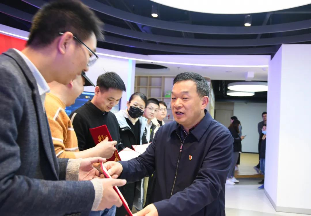 ▲高新区党工委委员熊国华为示范企业颁发证书