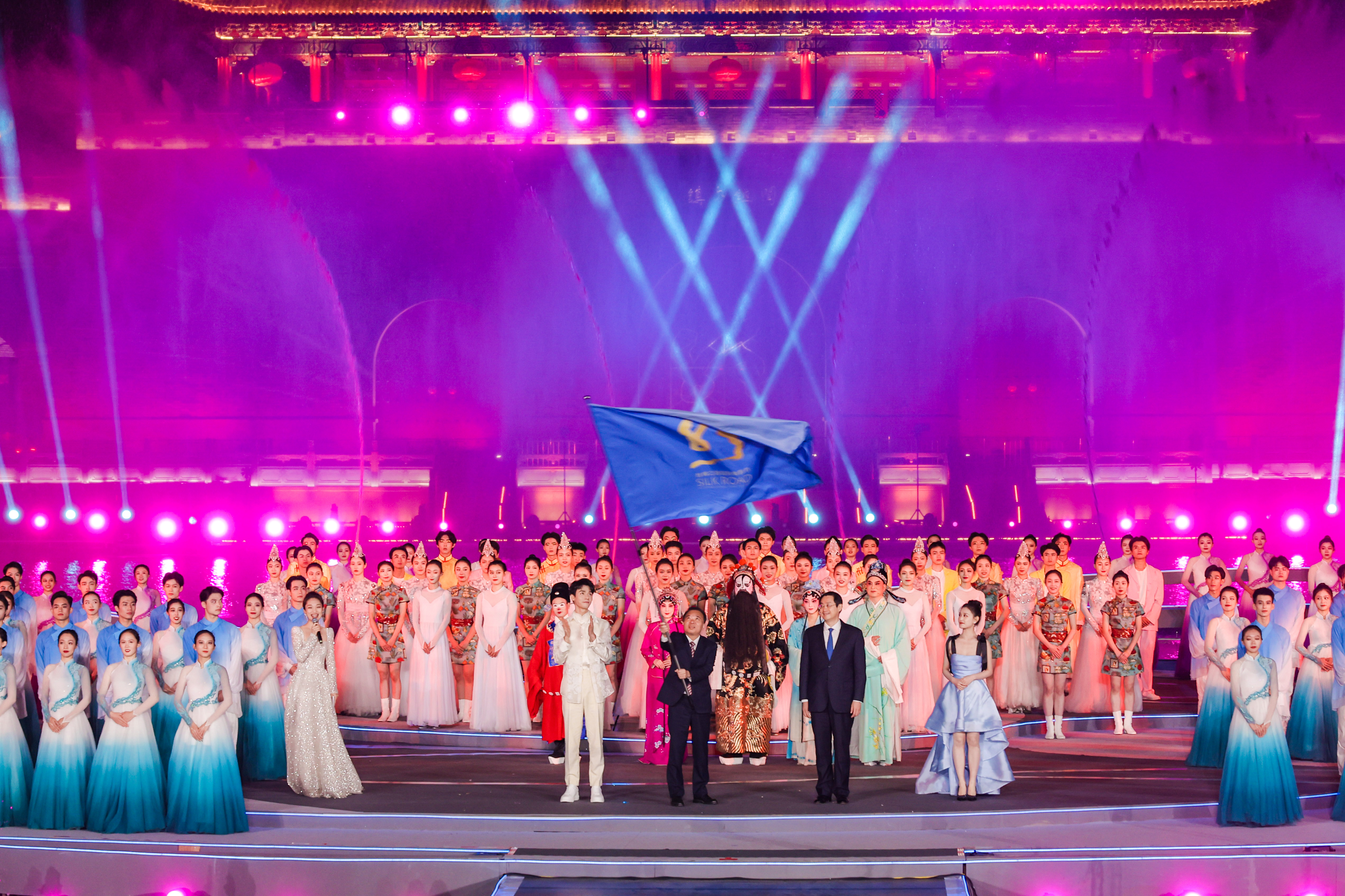 活动现场,90秒的西安城市宣传片带领现场嘉宾和观众领略千年古都的风采和陆上丝绸之路的魅力。随后,丝路电影节青年宣传大使龚俊手持会旗亮相。中共福建省委常委、宣传部部长张彦将会旗交接给中共陕西省委常委、宣传部部长王晓,这也标志着本届丝路电影节圆满落幕。
